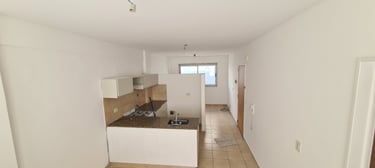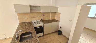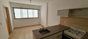 Monoambiente de 28.48 m² muy luminoso con cocina integrada con anafe y horno a gas, conexión para lavarropas, cuenta con baño completo, CON COCHERA FIJA semicubierta en plantabaja viene incluida en el precio.